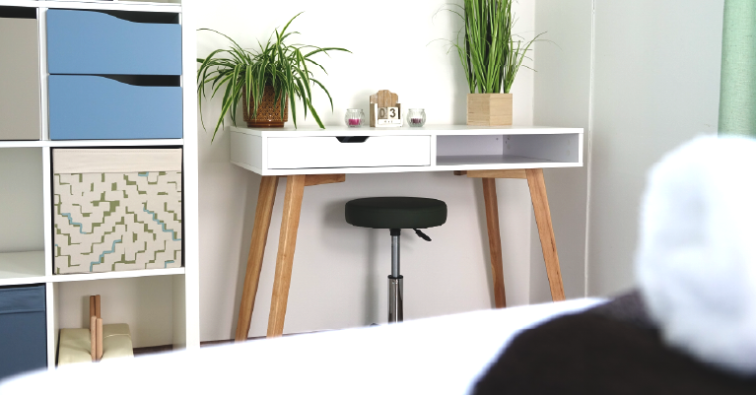 Ausstattung: Massageliege, Handtücher & Öle, Duftdiffuser, Zimmerbrunnen, Schreibutensilien, Regale zur Ablage