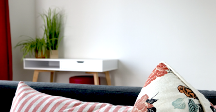 Ausstattung: Sessel, kleines Sofa, Schreibtisch mit Hocker, Whiteboard, Pinnwand, Schreibutensilien